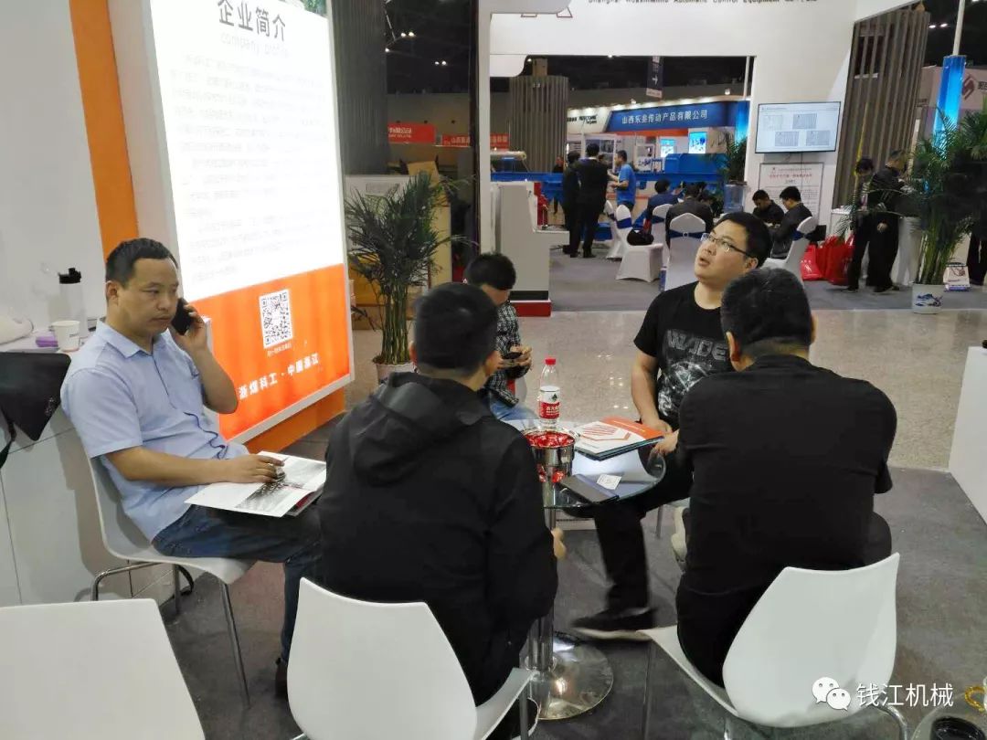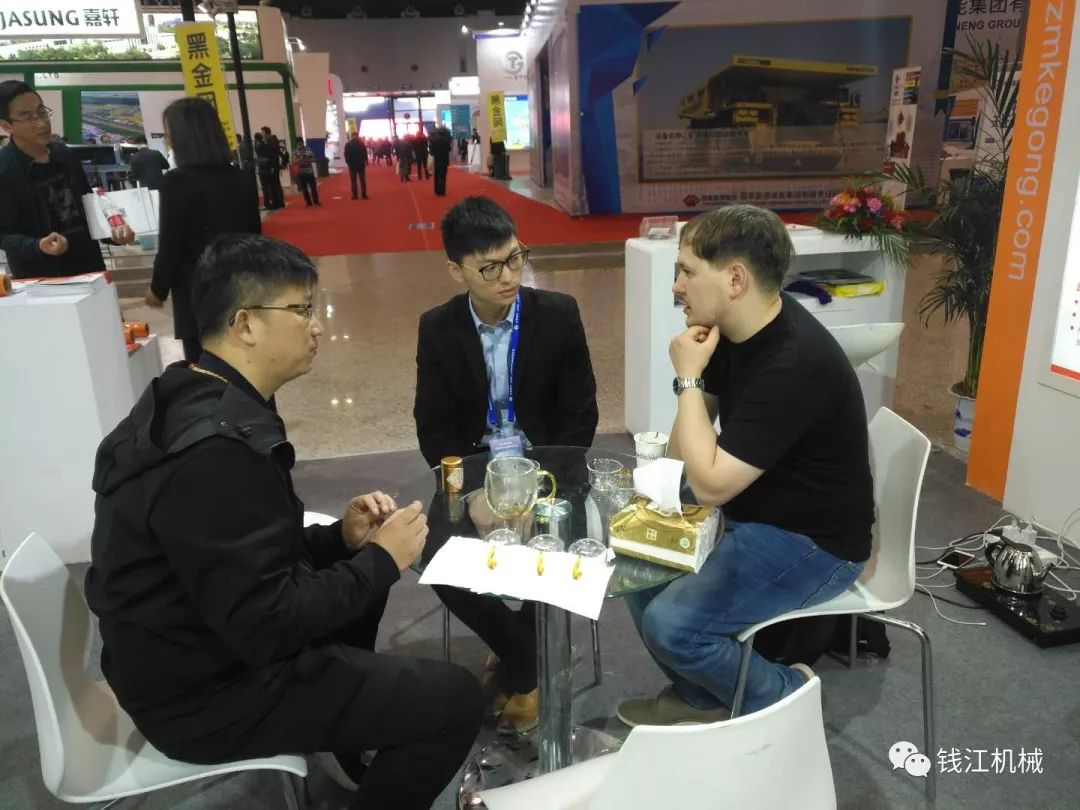 浙煤科工产品吸引到国外朋友的关注,现场与来自俄罗斯的客户代表交流洽谈