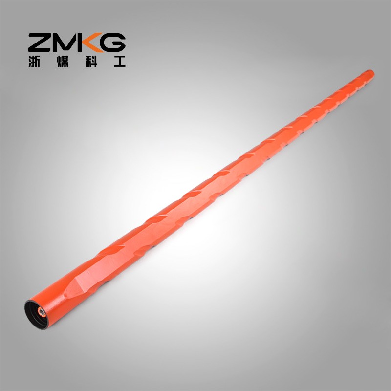 三棱螺旋槽高韧性中心通缆钻杆在钻杆上直接铣削加工而成。螺旋凹槽主要用于减少进退钻杆阻力,同时在遇到卡钻、埋钻等异常情况需要旋转拉动钻杆时,螺旋凹槽的棱边可将卡钻的煤块或块搅碎,在利用凹槽辅助排粉,对解决卡钻、埋钻的现象起到良好的作用。