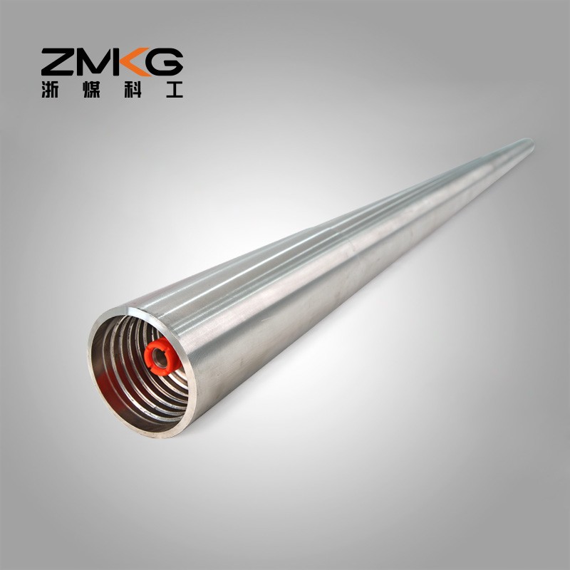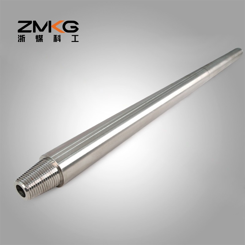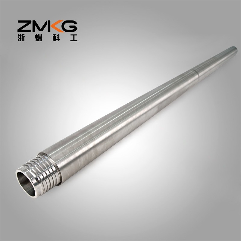 无磁钻杆是定向钻进随钻测量的配套设备,具有减小外界对随钻测量装置的干扰、信号传输、输送孔底马达动力介质和钻机动力传递等作用,是煤矿井下定向钻具的重要组成部分,具有导磁率低、抗拉强度高和抗扭性能好的特性,为孔内测量系统提供不受钻具磁性干扰的无磁环境,探管处的磁场与附近的大地磁场几乎相等,因而能够准确分辨钻孔的地磁方向,确保测量系统的测量精度。